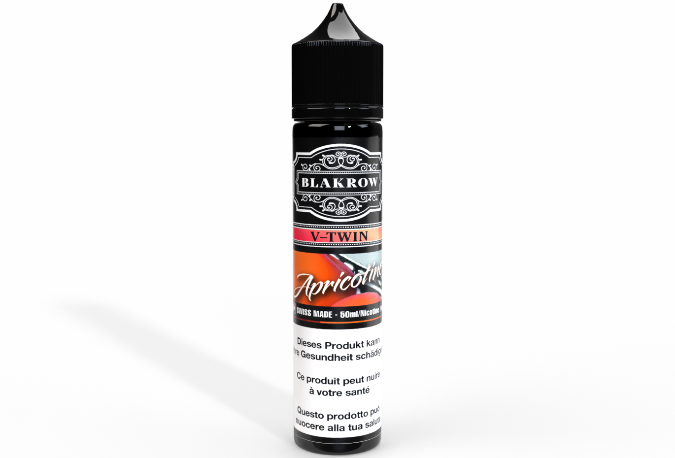 Découvrez le Best Seller « L’apricotine » de la gamme V-TWIN par BLAKROW. Un arôme d’abricot sublimé par une pointe de cactus et de vanille, créant un côté de fruit d’été à peine mûri et fraîchement cueilli.